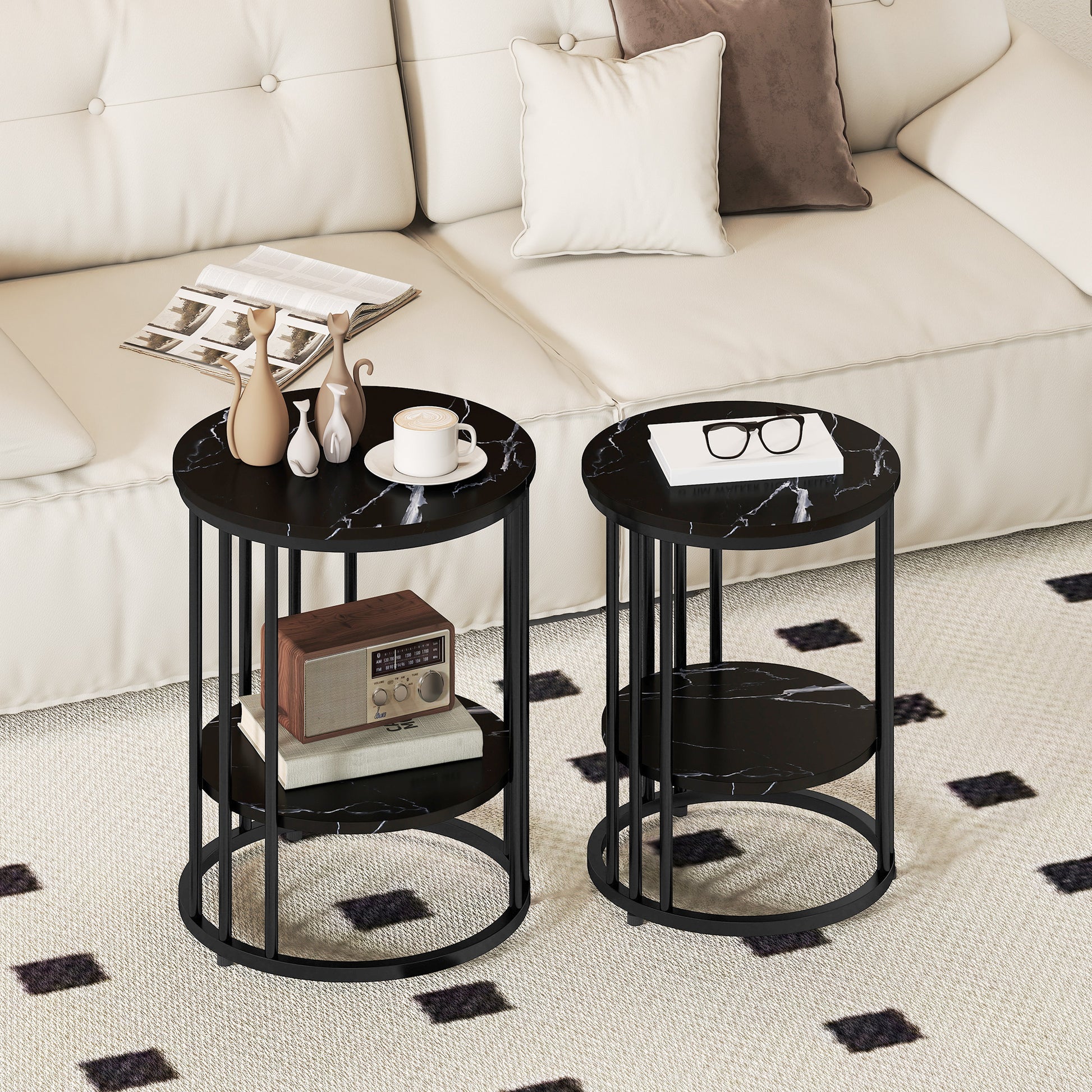 Whether you're entertaining guests, need extra surface space, or want to create visual interest in your living room, these nesting tables deliver both form and function. The classic black marble effect complements contemporary, modern, and transitional décor styles beautifully.